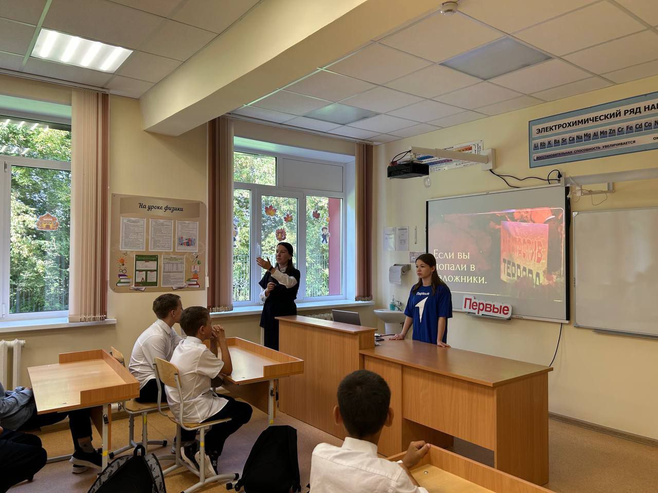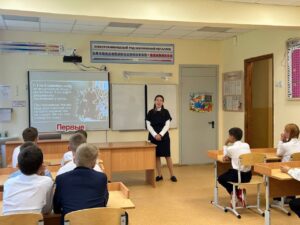 Наталья Евгеньевна напомнила о трагедии Беслана и событиях сентября 2004 года. Первые под руководством Рачëвой Алины обсудили вопросы «Что такое терроризм и экстремизм?», «Почему это опасно для общества?», «Как формируется толерантность и уважение к другим культурам?», «Что может сделать каждый для безопасности в своем сообществе?»