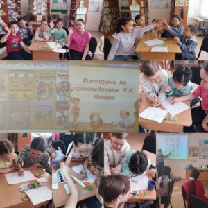 Ребята участвовали в викторине по произведениям Н. Н. Носова, отгадывали загадки, узнавали героя по описанию, называли произведение по сюжету иллюстрации.