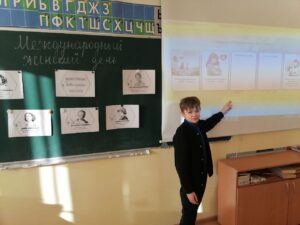 В начале занятия педагоги вспомнили с учащимися о том, какой праздник отмечается 8 марта, его историю и значение в современном понимании. Посмотрели видеоролик-анонс с Евгением Егоровым. Побеседовали о известных соотечественницах, которые внесли вклад в развитие нашей страны в прошлом и в настоящее время.