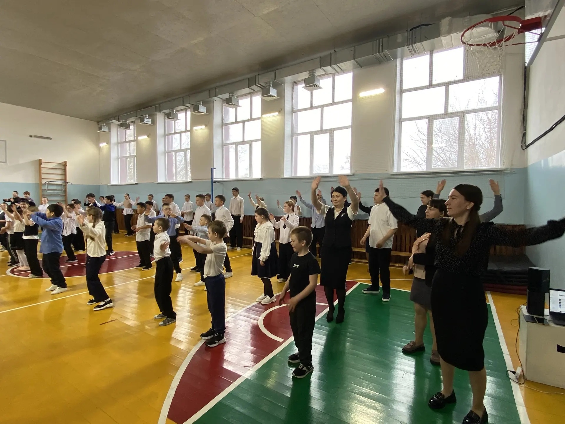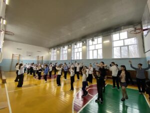 Под ритмичную музыку учащиеся и педагоги с удовольствием выполнили комплекс физических упражнений, взбодрились и зарядились энергией на весь день!